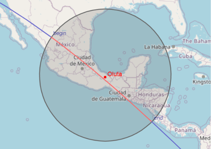 También la Tiangong pasará por el sureste del estado de Oaxaca y el oeste de Chiapas.