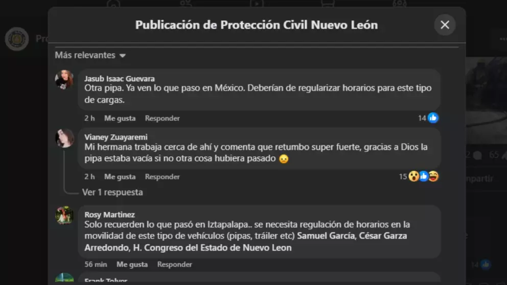 “Otra pipa… ya ven lo que pasó en México. Deberían regularizar horarios para este tipo de cargas”, expresó un internauta.