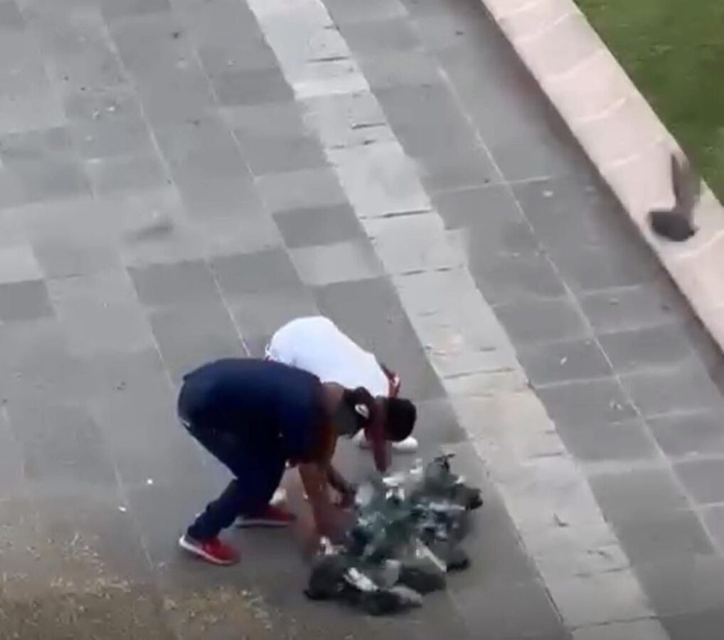 Un video difundido en redes sociales exhibió a dos hombres que, a plena luz del día, lanzaron una taraya para capturar palomas en el Jardín de los Palacios, en el centro de Aguascalientes.