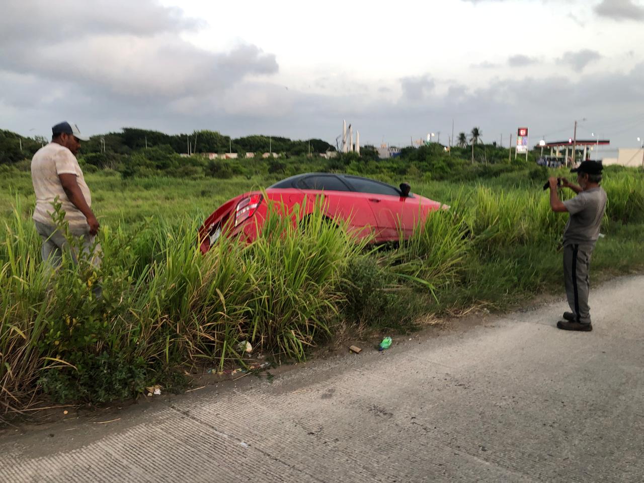 Coatzacoalcos, Ver. Dentro del monte terminó abandonado, un automóvil particular que ingresaba a la colonia Lomas de Barrillas, al poniente de la ciudad.