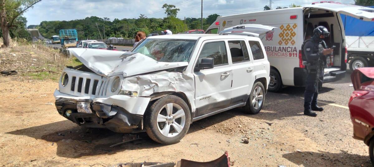 Soconusco, Ver.- Viernes 17 de Enero de 2025.-  Un fallecido y cuatro heridos fue el saldo de un accidente automovilístico múltiple registrado la tarde de este viernes 17 de enero, sobre la carretera Transístmica, a la altura del municipio de Soconusco, en el sur de Veracruz.