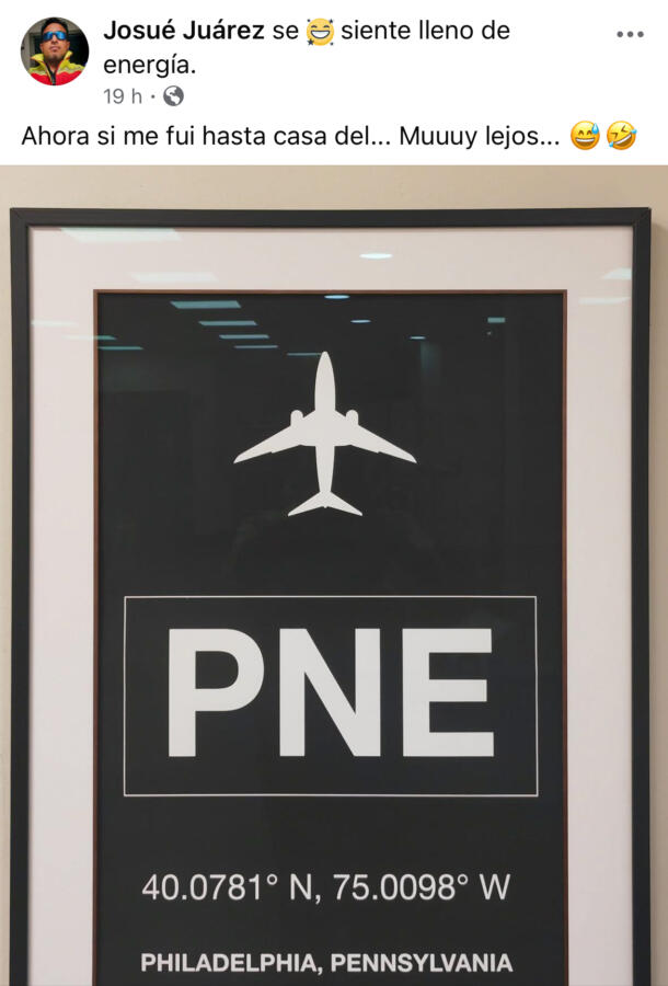 Antes de viajar, Josué Juárez hizo una publicación en su cuenta de Facebook, en la que hacía referencia a la ruta de lo que se convirtió en su último vuelo con destino a “Philadelphia, Pennsylvania”.