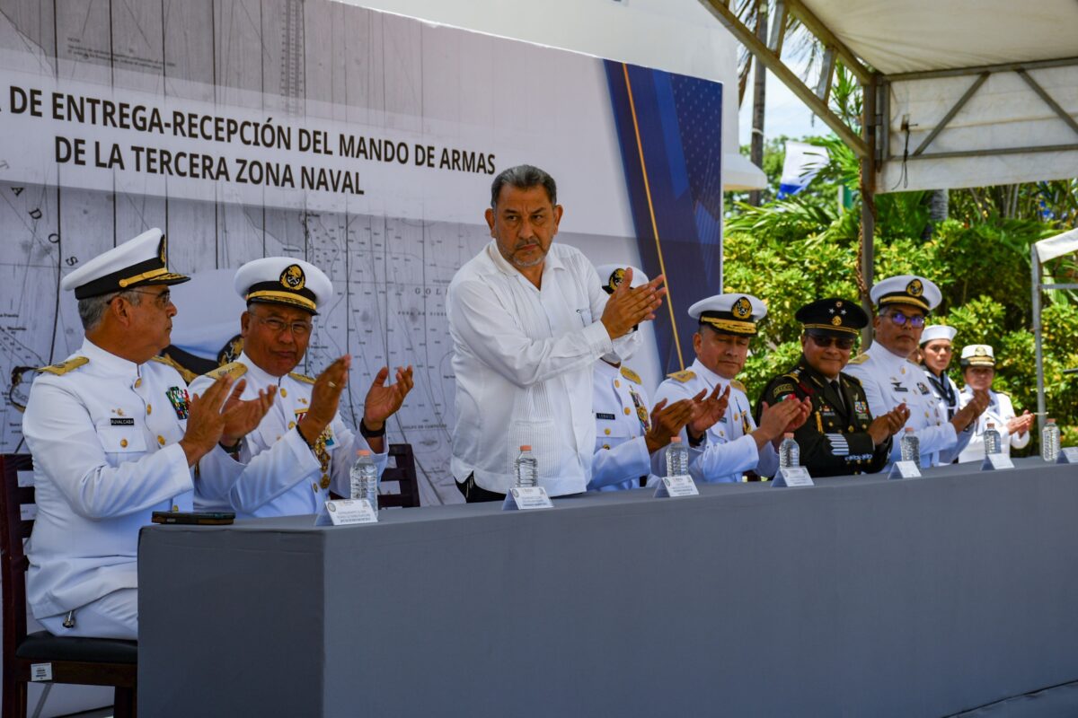 Durante la ceremonia, el alcalde reconoció la labor del vicealmirante Jesús Arellano Rodarte, quien deja el cargo para asumir su nueva encomienda como jefe de Estado Mayor de la Primera Región Naval.
