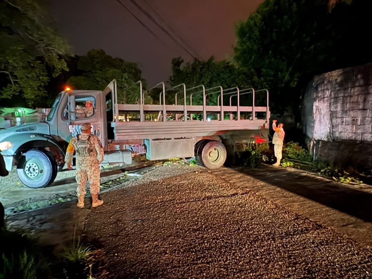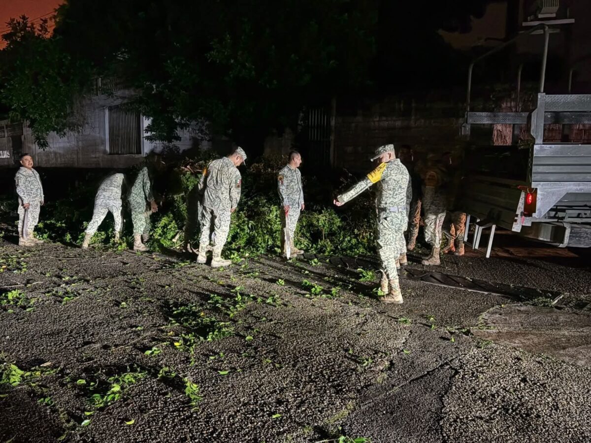 Minatitlán, Ver.— Personal de Protección Civil y Bomberos de Minatitlán, en coordinación con la SEDENA, continúa atendiendo los reportes de caída de árboles registrados en distintos puntos de la ciudad, como en la colonia Primero de Mayo, derivado de los fuertes vientos ocasionados por el Frente Frío número 13.