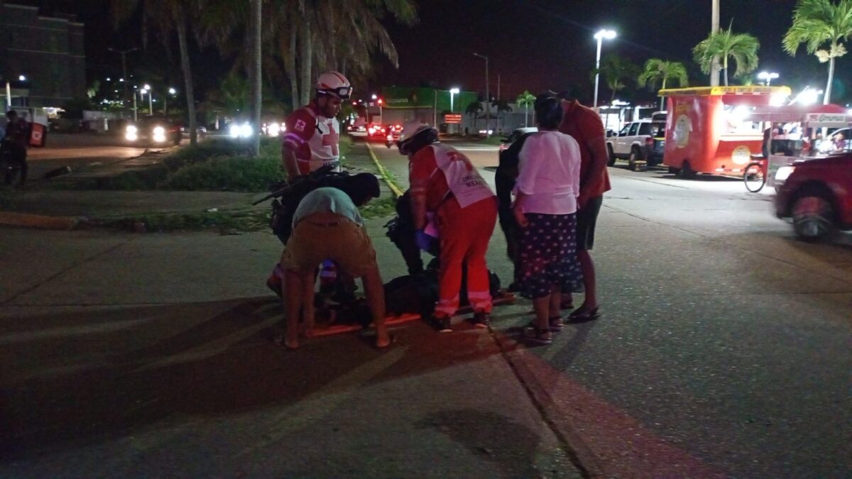Auto particular derriba a motociclistas en la colonia Paraíso en Coatzacoalcos.