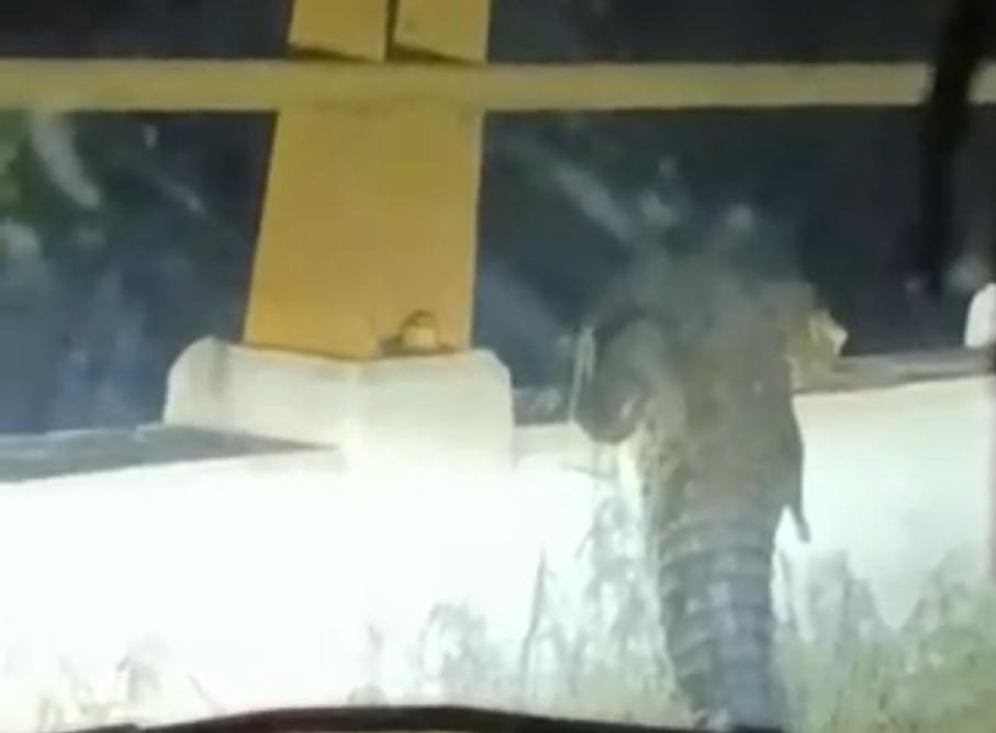 Acayucan, Ver., — Un cocodrilo de más de un metro de largo fue avistado sobre la estructura del puente ubicado en la comunidad de Corral Nuevo perteneciente al municipio de Acayucan, en el sur de Veracruz. Lo que generó alerta entre habitantes y automovilistas que transitan por la zona.
