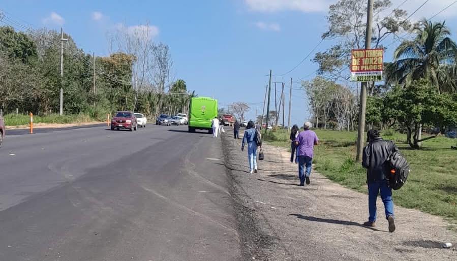 Con vehículos atravesados y presencia física sobre la carpeta asfáltica, los manifestantes mantienen interrumpida la circulación en ambos sentidos, afectando a quienes se dirigen al aeropuerto y a los conductores que transitan entre Minatitlán y Coatzacoalcos.