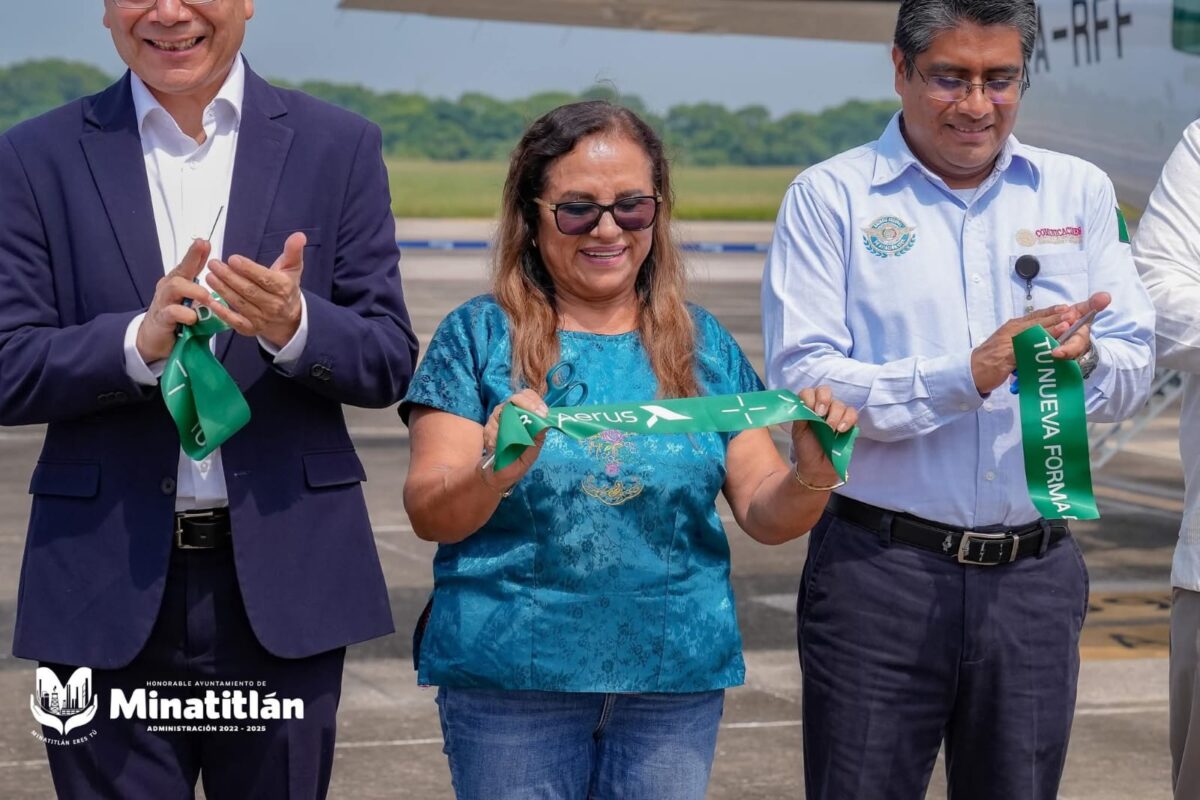 Minatitlán, Ver. — A invitación del Lic. Miguel Legorreta, Director Comercial de Aerus, la presidenta municipal de Minatitlán, Dra. Carmen Medel Palma, asistió a la inauguración de la nueva ruta aérea Minatitlán – Ciudad del Carmen.