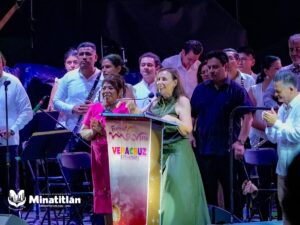 Durante la jornada inaugural, la alcaldesa acompañó a la Gobernadora del Estado, Ing. Rocío Nahle García, quien encabezó la ceremonia de apertura de este importante festival, que se desarrollará hasta el próximo domingo 17 de agosto en la ciudad de Coatzacoalcos.