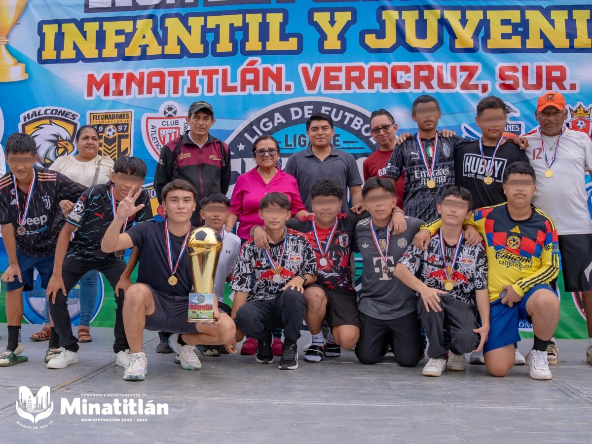 Minatitlán, Ver .- La Presidenta Municipal de Minatitlán, Dra. Carmen Medel Palma, participó en la ceremonia de premiación de la Liga de Formación Infantil y Juvenil de Fútbol, realizada en el Polideportivo, donde reconoció el esfuerzo y dedicación de niñas, niños y jóvenes deportistas.