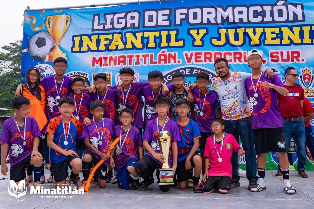 Minatitlán, Ver .- La Presidenta Municipal de Minatitlán, Dra. Carmen Medel Palma, participó en la ceremonia de premiación de la Liga de Formación Infantil y Juvenil de Fútbol, realizada en el Polideportivo, donde reconoció el esfuerzo y dedicación de niñas, niños y jóvenes deportistas.