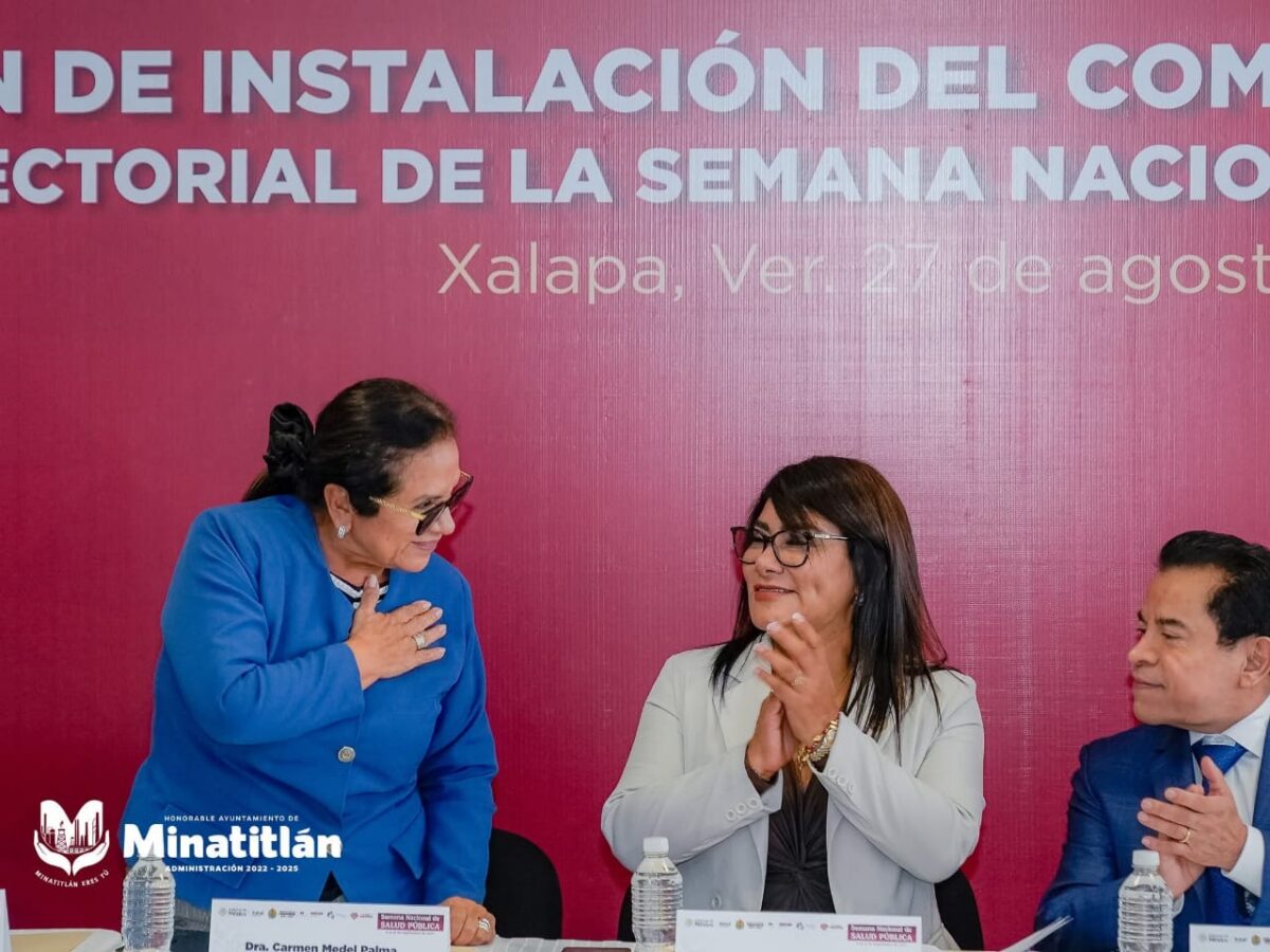 Minatitlán, Ver. – En el marco de la Semana Nacional de Salud Pública, la Presidenta Municipal de Minatitlán, Dra. Carmen Medel Palma, participó en una reunión con autoridades estatales y municipales, reafirmando su compromiso con el fortalecimiento de la salud pública desde el ámbito local.