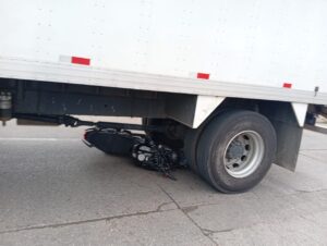 El accidente sucedió cuando ambas unidades transitaban de poniente a oriente sobre Juan Osorio, pero en una peligrosa maniobra, el motociclista colisionó contra el camión y terminó la moto debajo del vehículo de carga.