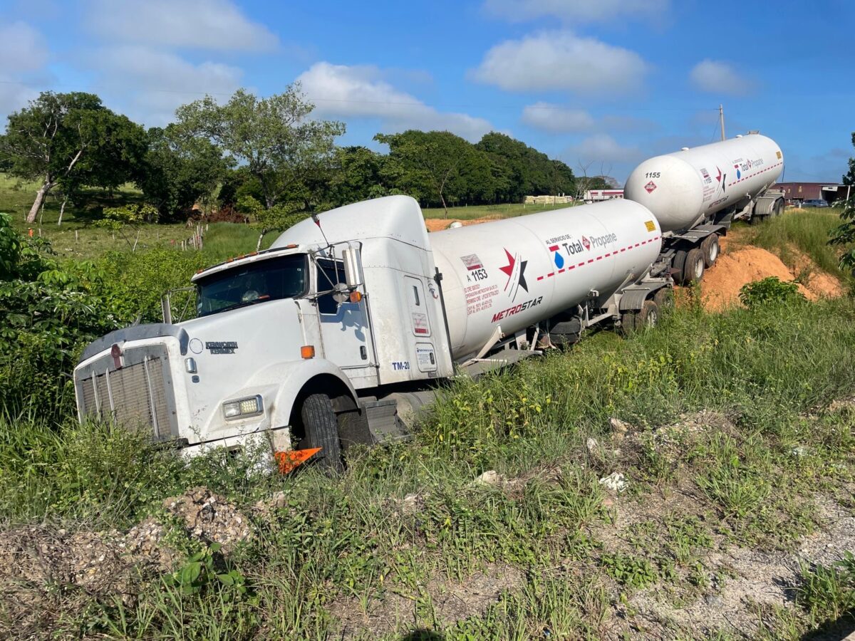 Horas más tarde, entre las siete y ocho de la mañana de este miércoles, se registró otro percance en el kilómetro 26. Un tráiler con doble autotanque de la empresa Total Propane terminó fuera de la vía y cayó a un pequeño barranco.