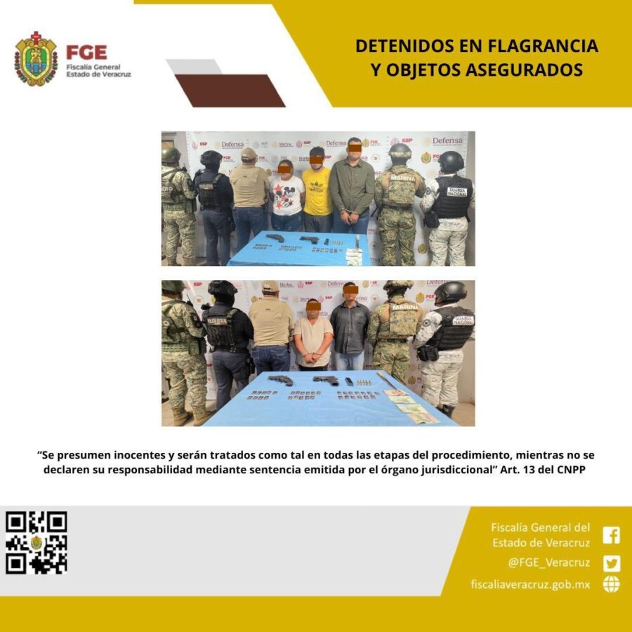 Se trata de Vicente “N”, Miguel Ángel “N”, Rubén “N”, Carlos Eduardo “N” y Esmeralda “N”, quienes fueron capturados en flagrancia en el anexo “Hablemos de Felicidad”, ubicado en la colonia Lázaro Cárdenas.
