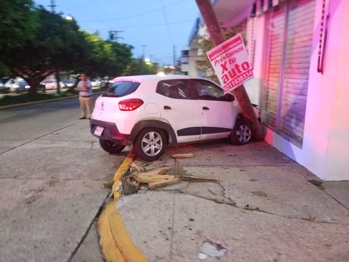 Por lo que impactó al auto compacto que fue proyectado contra un poste de madera, propiedad de una empresa de telecomunicaciones, la cual derribo por el fuerte golpe.