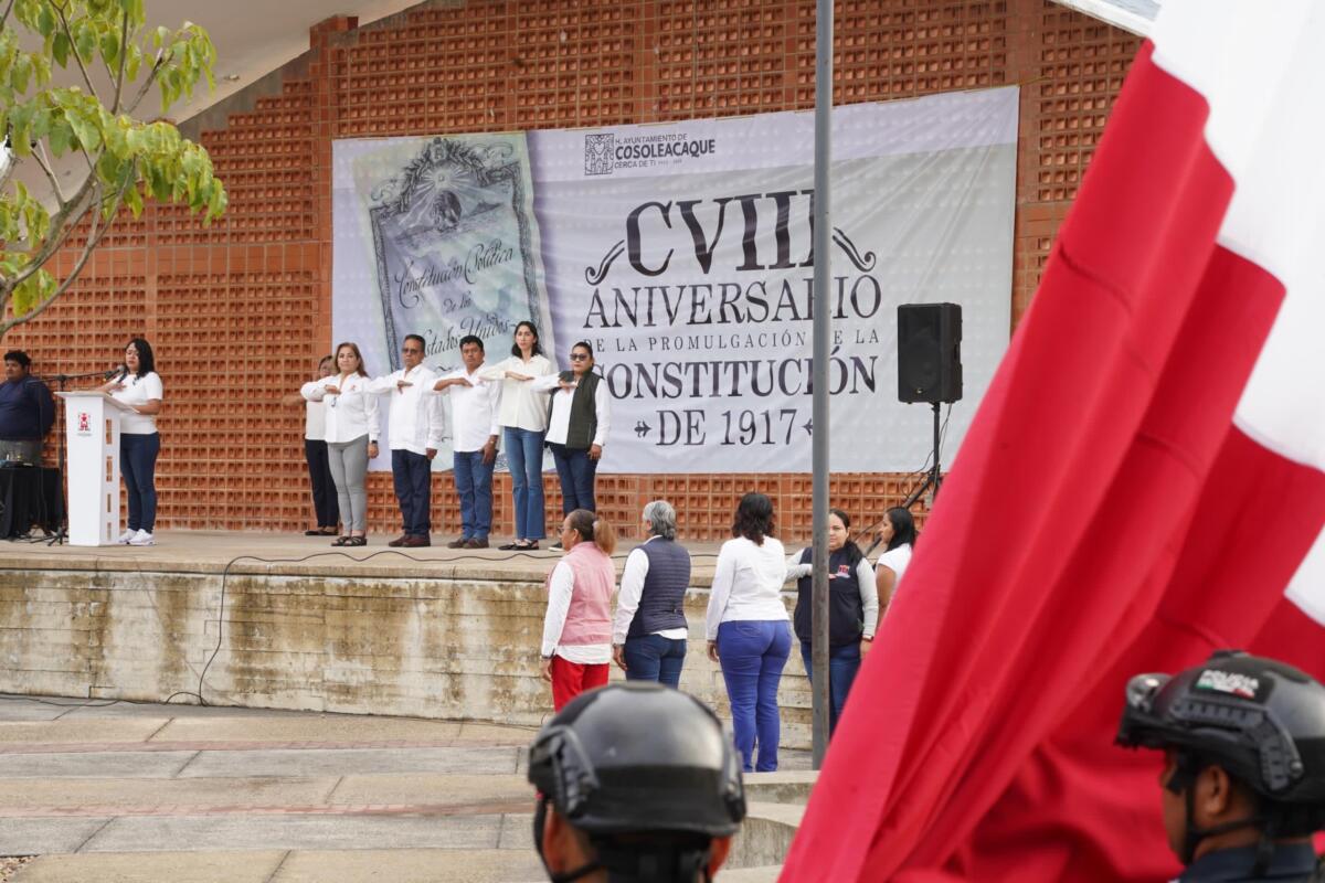 Elementos de la Policía Municipal de Cosoleacaque fueron los encargados de efectuar el izamiento y dirigir el himno nacional mexicano, para luego dar paso al personal de la dirección de educación municipal quienes dieron una reseña de este acontecimiento histórico.