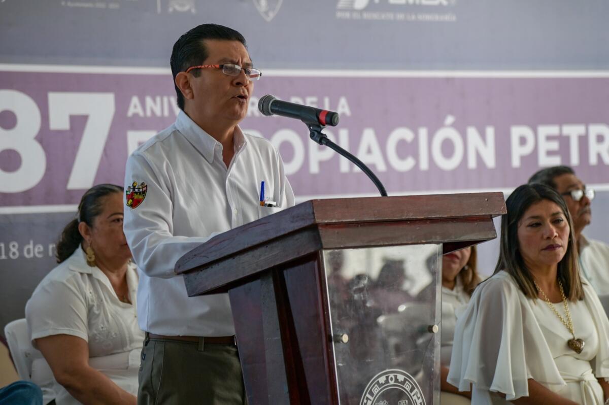 Como portavoz del sector petrolero, el maestro Juan Rivera Cruz, comisionado nacional del Comité Ejecutivo General, en representación de la secretaria general de la Sección 31, Margot Castañeda Cansino, destacó en su discurso la importancia de este acontecimiento histórico. Subrayó la unión del sindicato con el gobierno federal y recordó que la expropiación decretada por el presidente Lázaro Cárdenas del Río, en 1938, marcó un punto de inflexión en la soberanía energética del país, permitiendo que los recursos nacionales regresaran al pueblo mexicano.
