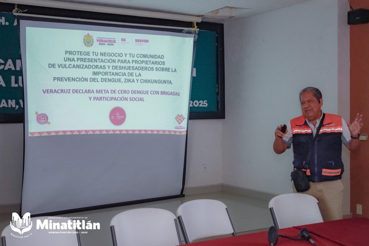 Minatitlán, Ver. – En seguimiento a la campaña estatal contra el dengue, se realizó una reunión con representantes de chatarreros y vulcanizadoras para fortalecer las acciones de prevención y control del mosquito Aedes aegypti.