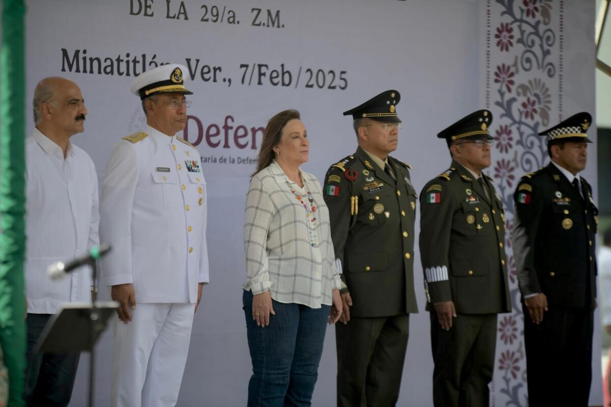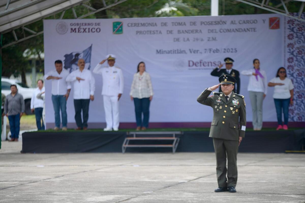 Minatitlán, Ver., viernes 07 de febrero de 2025.– La gobernadora Rocío Nahle García asistió a la ceremonia de Toma de Posesión y Protesta del nuevo comandante de la 29ª Zona Militar en Minatitlán, Antonio Alejandro Ramos Argüello, como parte de las estrategias de seguridad y reiterando el compromiso con el bienestar de las y los veracruzanos.