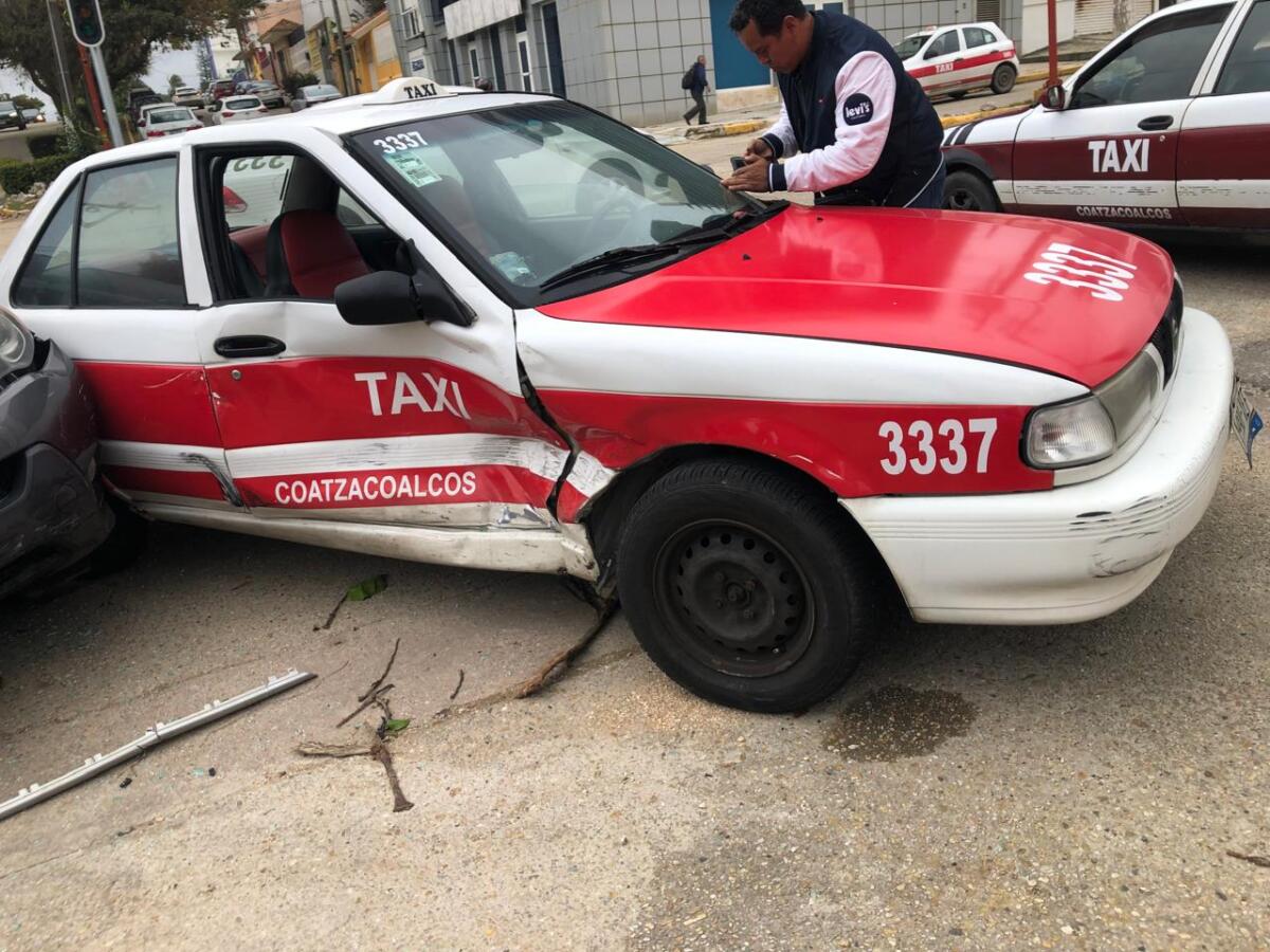 Dama colisiona contra taxi en el cruce de Av. Revolución y 16 de Septiembre en Coatzacoalcos