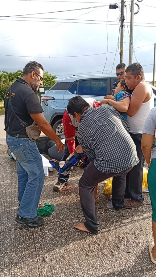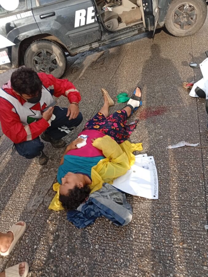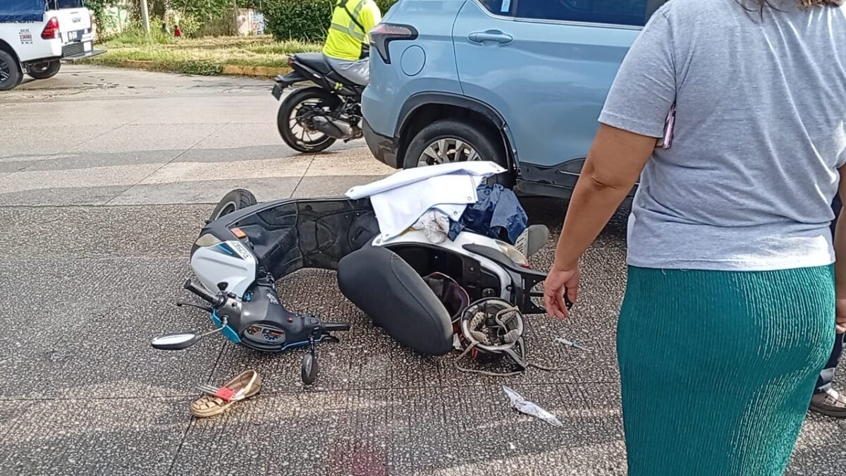 Coatzacoalcos, Ver., 23 de Octubre del 2025.- Con fractura expuesta de la pierna derecha, resultó una dama quién fue impactada la motocicleta en la que viajaba, durante la mañana de este jueves.