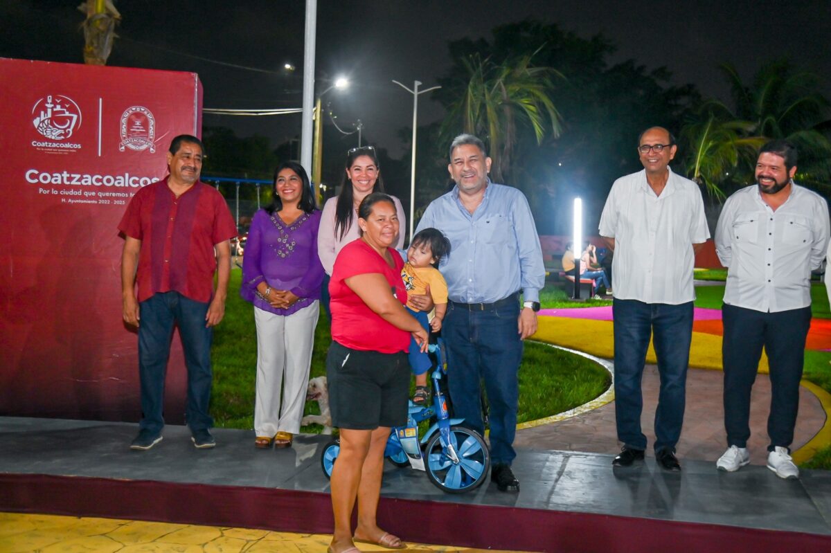 Coatzacoalcos, Ver., 18 de diciembre de 2025.- “Del parque inseguro que existía antes, hoy no queda nada. En su lugar tenemos un espacio colorido, alegre, amplio, digno y seguro”, expresó la jefa de manzana Reina Dimas Alfonso, al alcalde de Coatzacoalcos, Amado Cruz Malpica, durante la inauguración del espacio multideportivo ‘Progreso y Paz’.