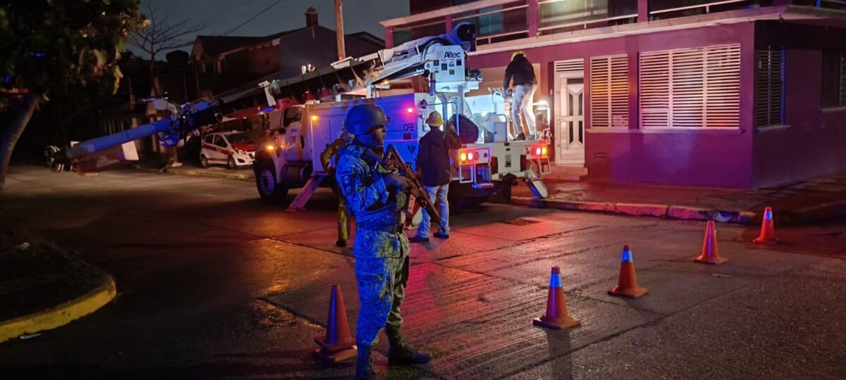 Además, el personal militar ha brindado apoyo crucial al equipo de la Comisión Federal de Electricidad (CFE), resguardando las áreas dañadas para permitir que los técnicos pudieran trabajar con seguridad y celeridad en el restablecimiento del servicio eléctrico en varios sectores del puerto.