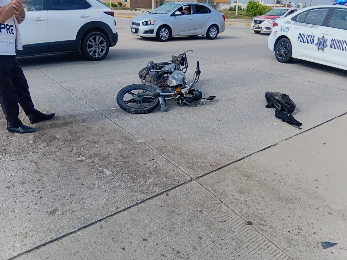 El accidente ocurrió cuando la camioneta transitaba de sur a norte sobre Zabludovsky, pero al llegar al cruce, su conductor no se percato de la presencia del motociclista que se desplazada de poniente a oriente sobre el Malecón.