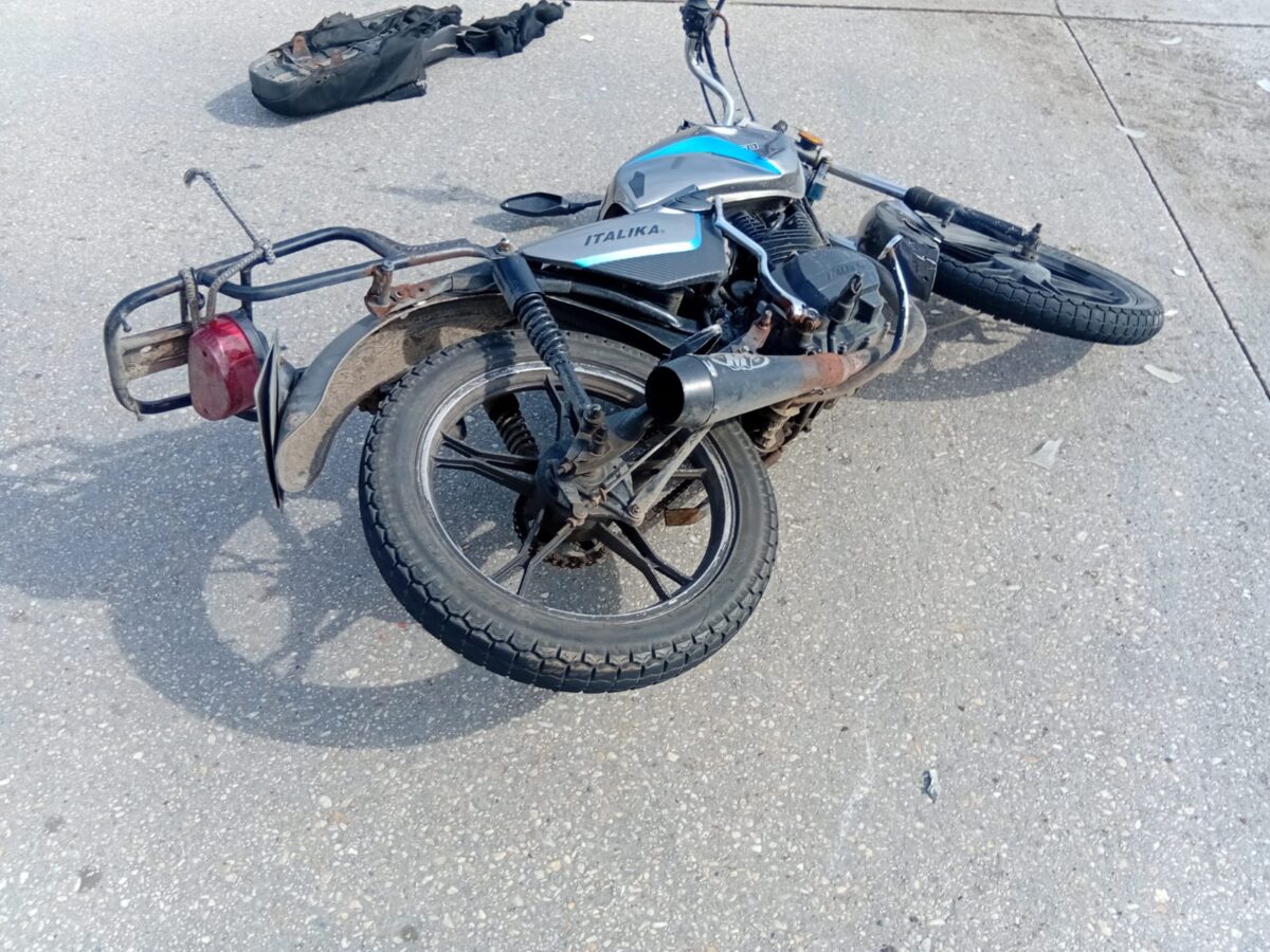 Que colisiono contra una motocicleta marca Italika, tipo DR 150, con placas SCT-4-D del estado de Veracruz, que manejaba el joven Freddy, quien terminó tendido en el pavimento.
