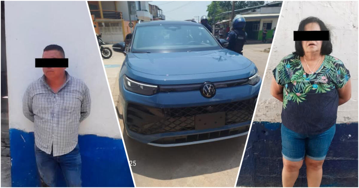 Los delincuentes intentaron huir en una camioneta Volkswagen Tiguan color azul, pero fueron detenidos por un ciudadano que alertó a las autoridades, lo que permitió su pronta detención.