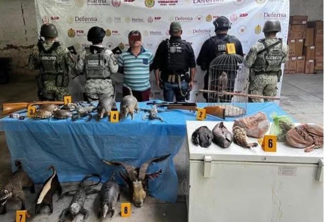 Tierra Blanca, Ver., 7 de julio de 2025. — Un operativo conjunto entre fuerzas federales y estatales permitió la detención de un hombre acusado de homicidio calificado y el aseguramiento de fauna silvestre disecada, armas y cartuchos útiles, durante un cateo ejecutado en la localidad de Huixcolotla, municipio de Tierra Blanca.