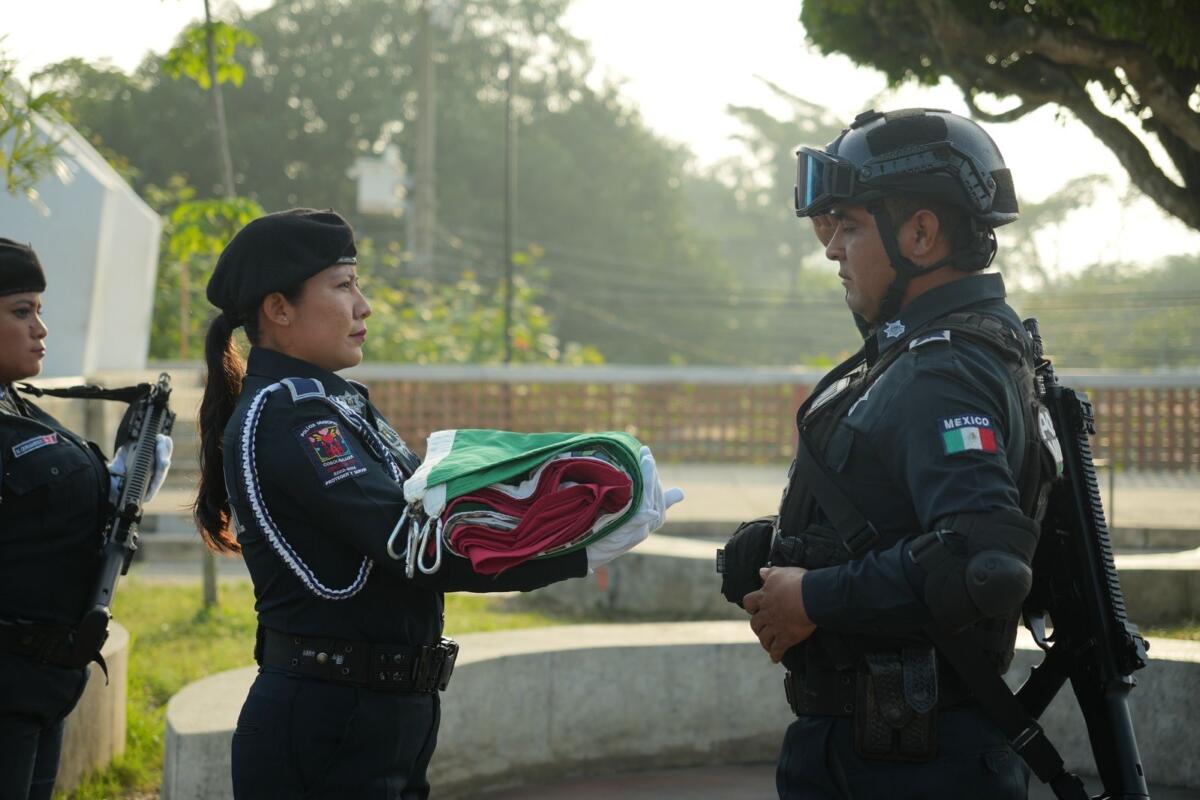 Los regidores, Rogelio León Morales, José Mario Silva Aulis, Diana Cristina Santos Hernández, Norman Arturo Lagunes Chiñas y el secretario municipal Luis Vicente González Alor, fueron los encargados de encabezar el homenaje donde se destacó la valentía y el compromiso de las fuerzas militares en la defensa del país.