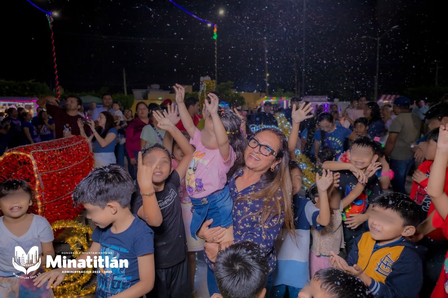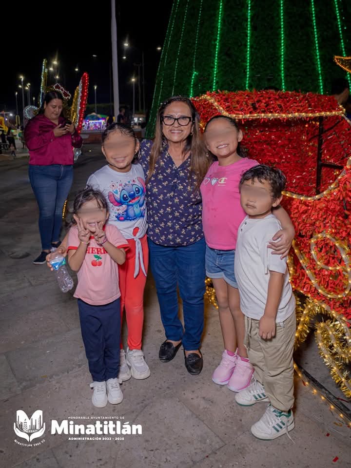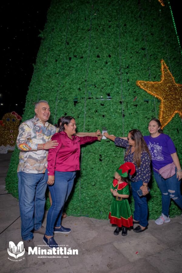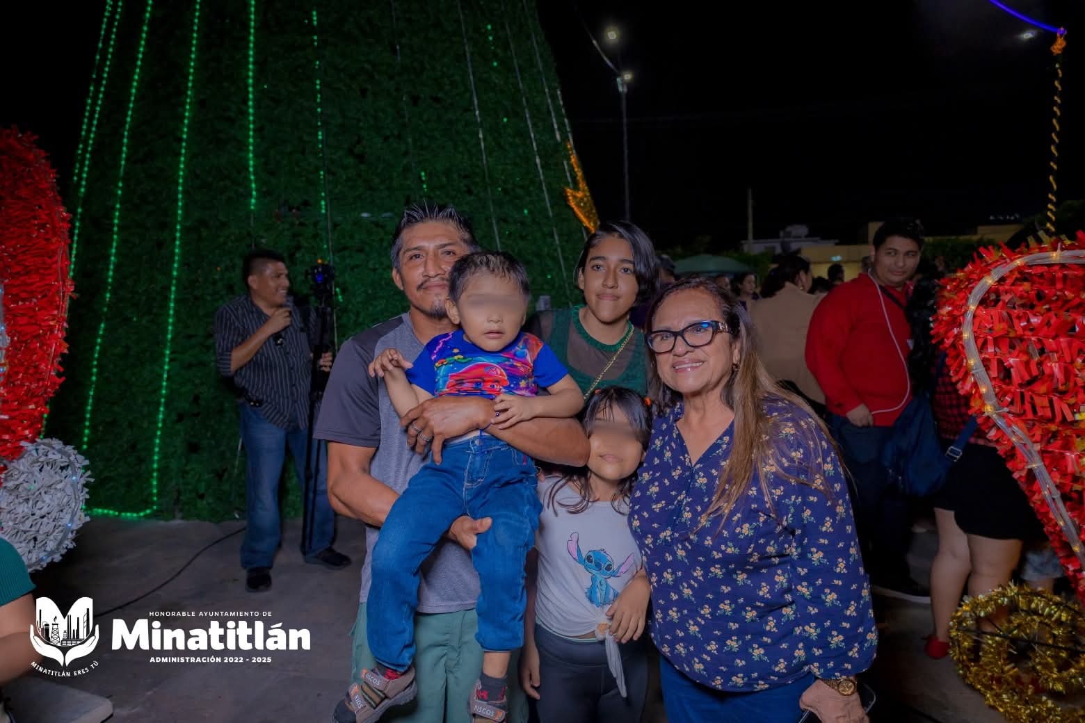 La presidenta municipal de Minatitlán, Dra. Carmen Medel Palma, encabezó el encendido, donde destacó que, a 24 días de culminar la administración municipal 2022–2025, esta temporada representa un momento especial para fortalecer los valores y la unión que caracterizan a las familias minatitlecas.