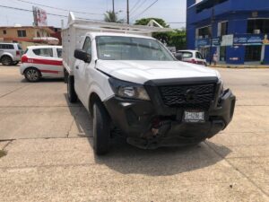 Que impactó contra un automóvil particular marca Nissa, tipo Versa, color Rojo, con placas YSZ-829-B de la misma entidad, manejado por una dama, quien resultó lesionada y tuvo que ser auxiliada por socorrista de la Cruz Roja.