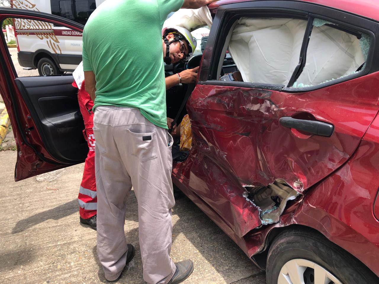 Coatzacoalcos, Ver. Una dama y un hombre lesionados y daños materiales por más de 120 mil pesos, fue el saldo de aparatoso accidente automovilístico que se registró la tarde de este lunes, en calles del centro de la ciudad.