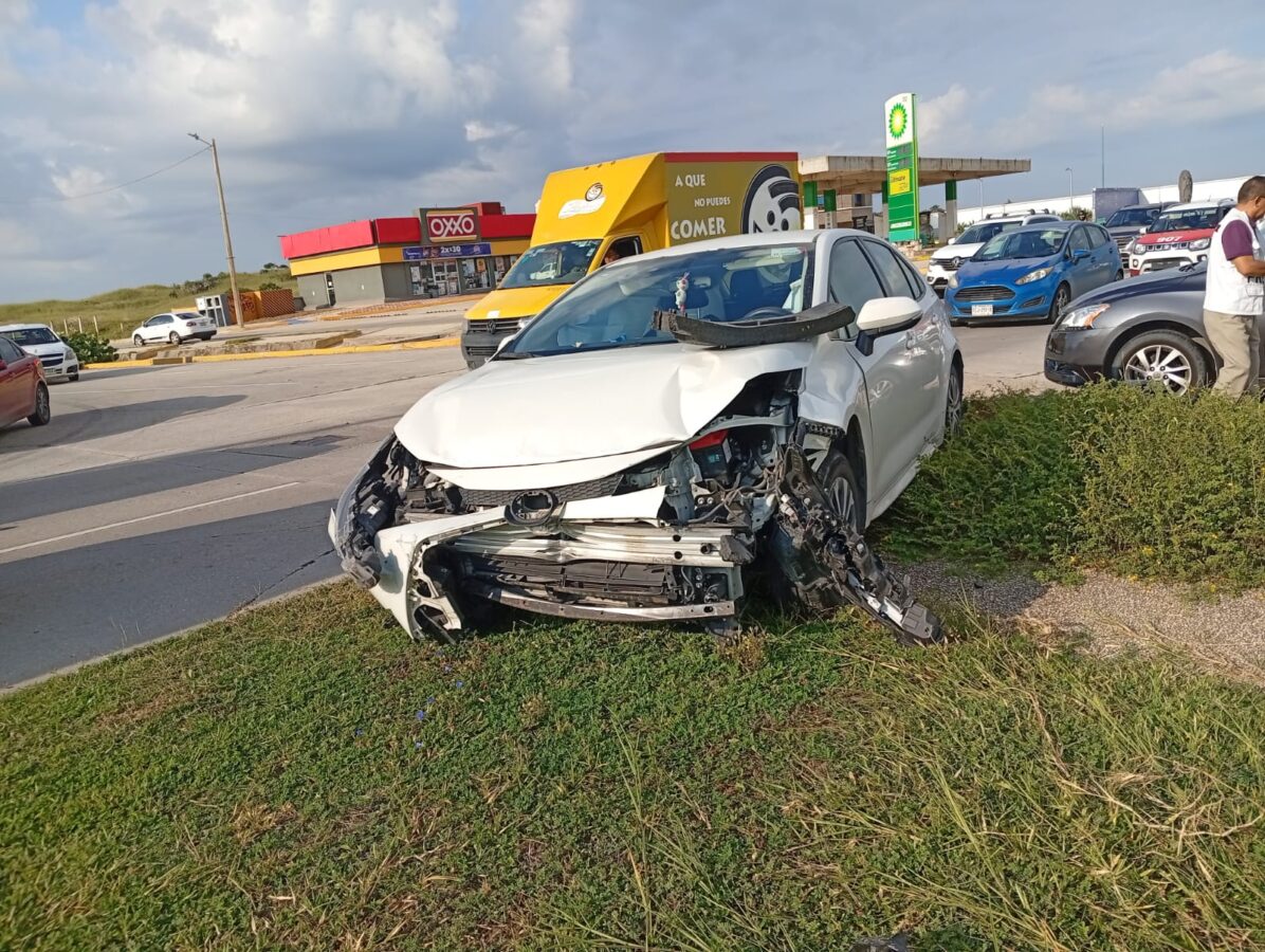 Que colisionó contra un automóvil marca Toyota, tipo Corolla, color blanco, con placas YMX-564-A de la misma entidad.