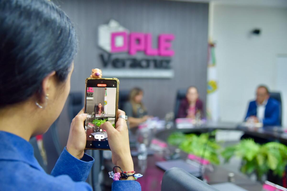 Ante la consejera presidenta del OPLE, Marisol Alicia Delgadillo Morales, la legisladora señaló que “Veracruz está siendo punta de lanza en nuestro país con este proceso”, reafirmó el compromiso del Congreso del Estado de acompañarlo y expresó su confianza en el actuar de las autoridades electorales para que se desarrolle en orden y apego a la normativa para beneficio de las y los veracruzanos.