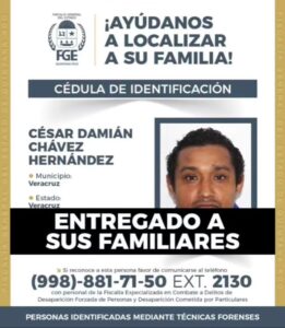 Se trata de César Damián Chávez Hernández, originario del puerto de Veracruz, y Santiago Hernández Díaz, procedente del municipio de Las Choapas, al sur de la entidad. Ambos fueron entregados a sus familiares para ser trasladados a sus lugares de origen, donde recibirán sepultura conforme a sus tradiciones.