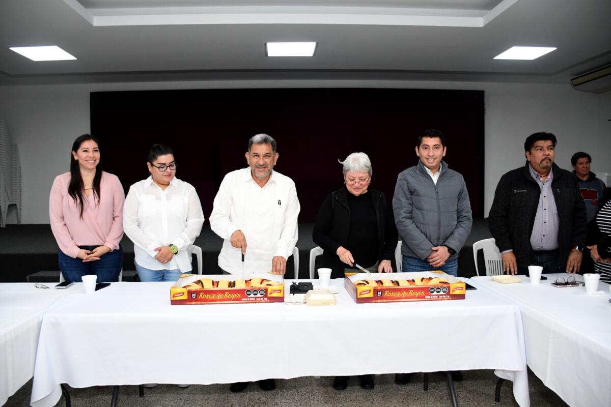Fortalece Amado Cruz Malpica lazos con el gremio magisterial en la tradicional partida de rosca.