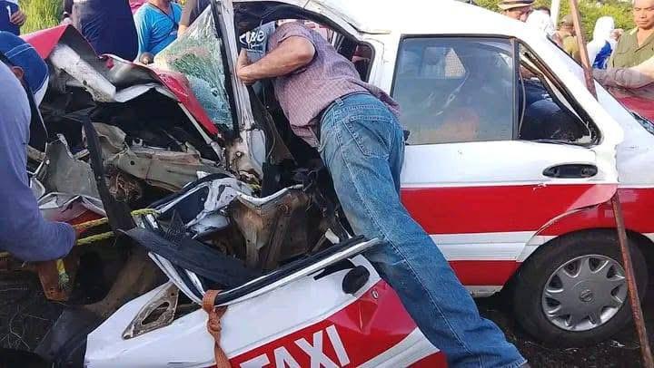La escena fue caótica. El taxi terminó con el frente completamente destrozado, mientras que el Neon quedó varado a un costado de la carretera, con severos daños en su parte delantera. Ambos vehículos quedaron inutilizables. Testigos presenciales, visiblemente alterados por el suceso, relataron que el Neon habría invadido el carril contrario a exceso de velocidad, provocando el impacto frontal que dejó los tres heridos.