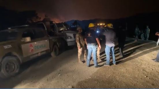 En el sitio permanece personal técnico y equipo contraincendios de Pemex, quienes continúan realizando las labores correspondientes para evitar daños mayores.