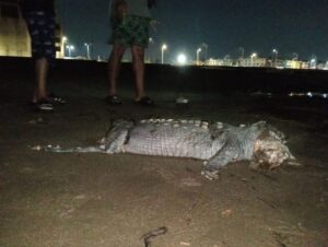 Coatzacoalcos, Ver.— Sin cabeza ni cola y en avanzado estado de descomposición, fue hallado el cadáver de un cocodrilo moreletti en la playa de Coatzacoalcos, a la altura de la colonia Playa Sol, durante la noche del lunes.