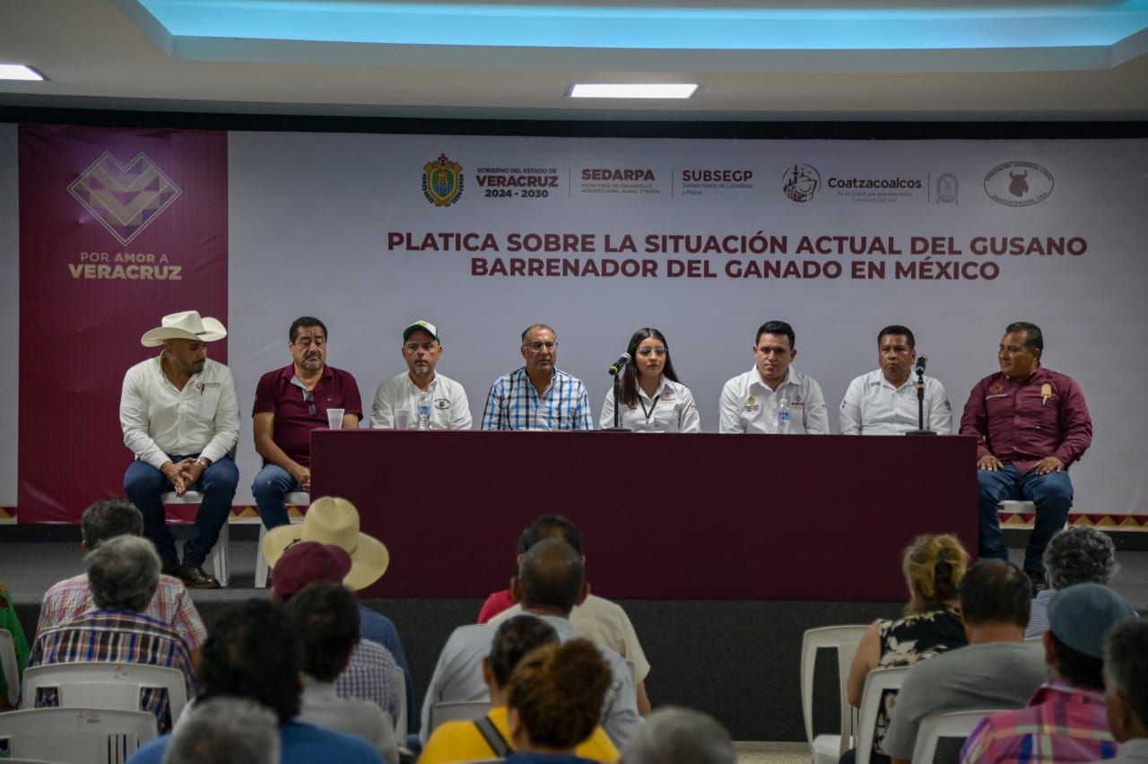Coatzacoalcos, Ver., 15 de julio de 2025.– Alrededor de 100 productores de ganado de Coatzacoalcos participaron en la ‘Plática sobre la situación actual del gusano barrenador del ganado en México’ donde recibieron información sobre cómo prevenir este padecimiento y qué hacer en caso de que los animales se infesten.