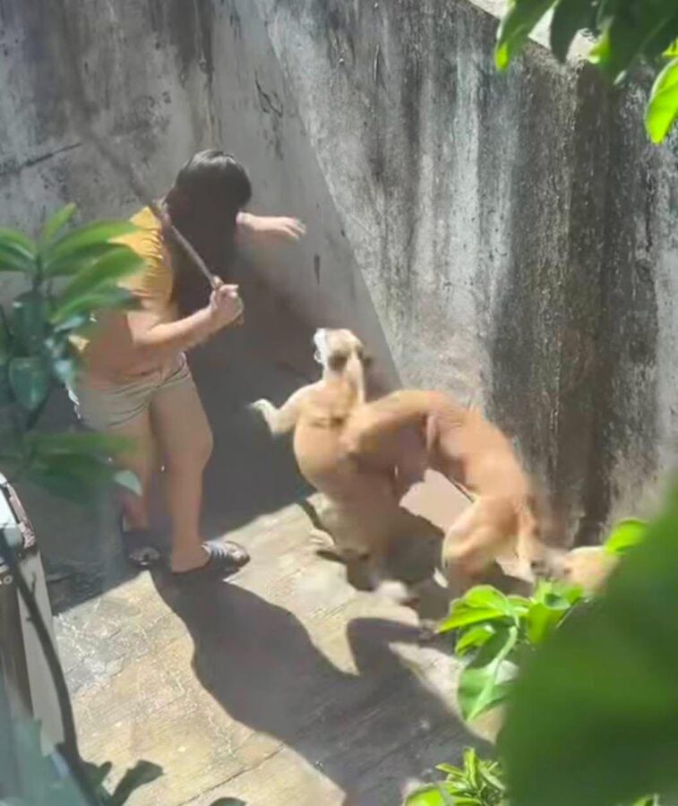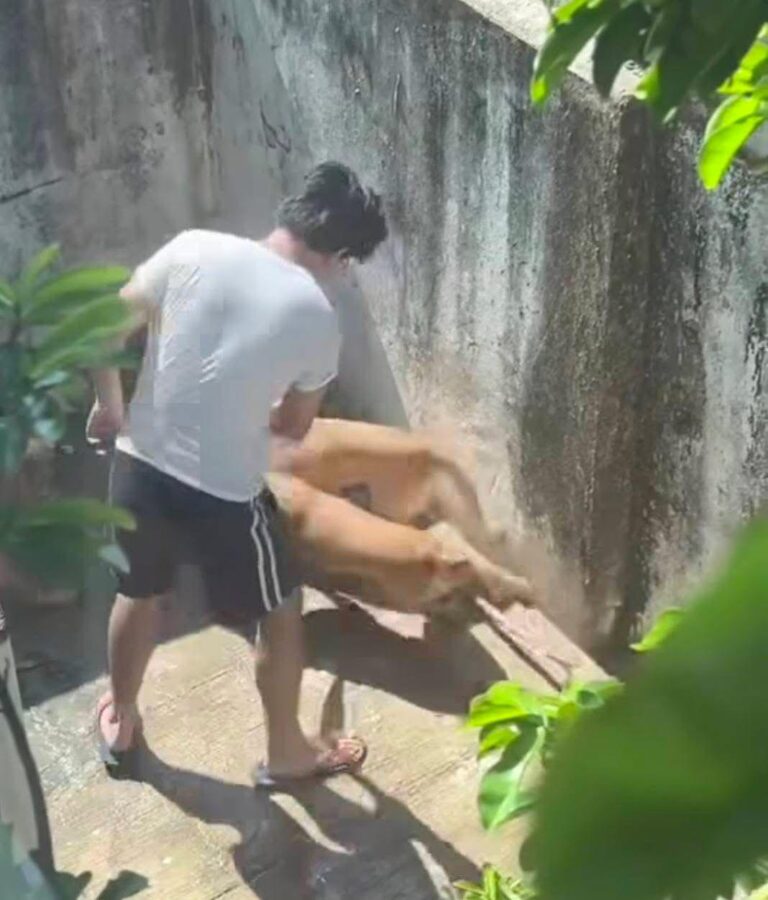 Las imágenes, compartidas este lunes 9 de junio, muestran a un hombre y dos jóvenes presuntamente padre, hijo e hija golpeando a los animales bajo el argumento de intentar separarlos durante una pelea.