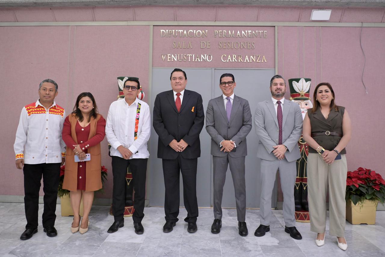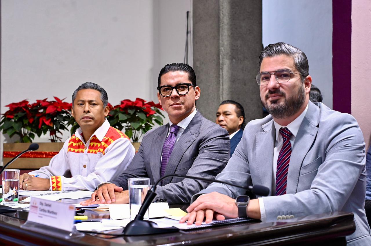 La conducción de este acto de rendición de cuentas, iniciado a las 10:09 horas, estuvo a cargo de los diputados José Ricardo Ruiz Carmona, Daniel Cortina Martínez y Urbano Bautista Martínez, presidente, secretario y vocal de la Comisión Permanente de Comunicaciones.