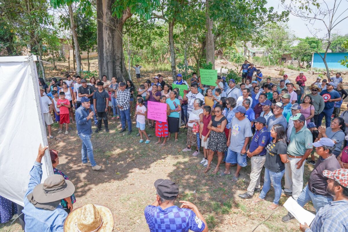 Con pancartas en mano y aplausos, los habitantes recibieron a los ediles para agradecer la obra tan importante que consiste en la construcción de un domo, techo autosoportante, cancha de fútbol con pasto sintético, juegos infantiles y ejercitadores.