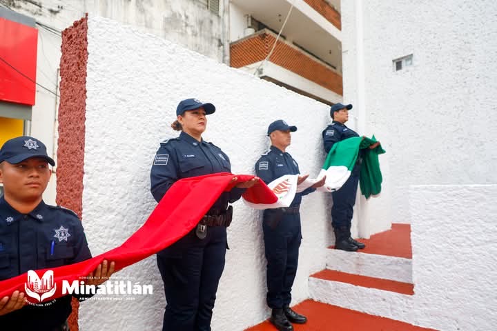 El izamiento de la bandera fue realizado junto al Lic. José Alberto Ortiz Zambrano, Director de la Policía Municipal, quien, junto a la presidenta municipal, observó cómo la bandera ondeaba con orgullo en el cielo de Minatitlán.