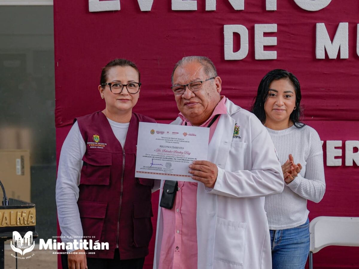 Minatitlán, Ver.— Minatitlán fue certificado oficialmente como Municipio Saludable por la Secretaría de Salud del Estado, reafirmando el compromiso de la administración municipal con el bienestar, la prevención y la calidad de vida de su población.