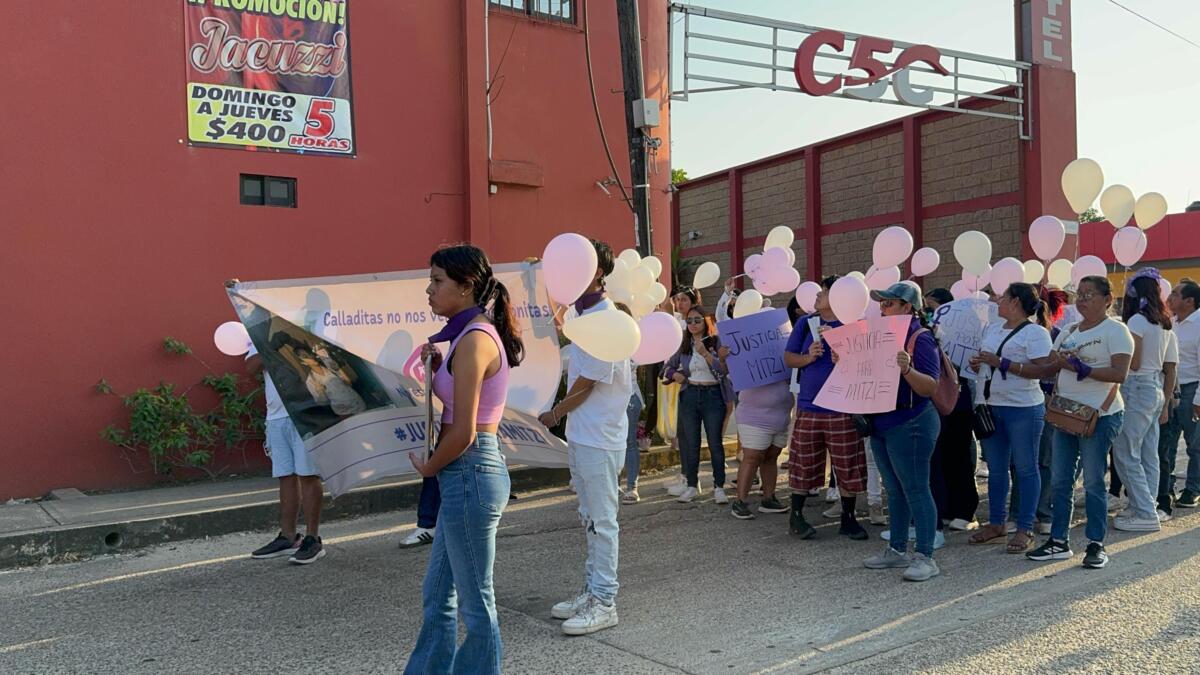 Con pancartas en mano, globos y veladoras, este martes 18 de marzo, pidieron a la Fiscalía General del Estado (FGE) que se esclarezca la muerte de Mitzi.